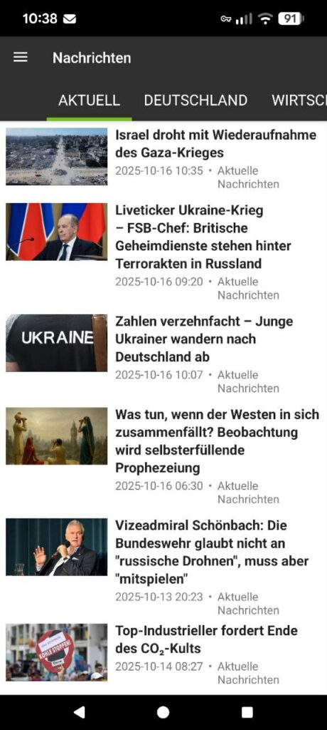 Dank der Android App hast du nicht nur die neuesten Schlagzeilen immer griffbereit, sondern kannst dich auch über Videos, Reports und exklusive Inhalte informieren. Besonders praktisch ist die Möglichkeit, sich benachrichtigen zu lassen, wenn wichtige Ereignisse oder Nachrichten geschehen, sodass du stets bestens informiert bleibst. So entgeht dir nichts – ob Breaking News oder spannende Hintergrundberichte.